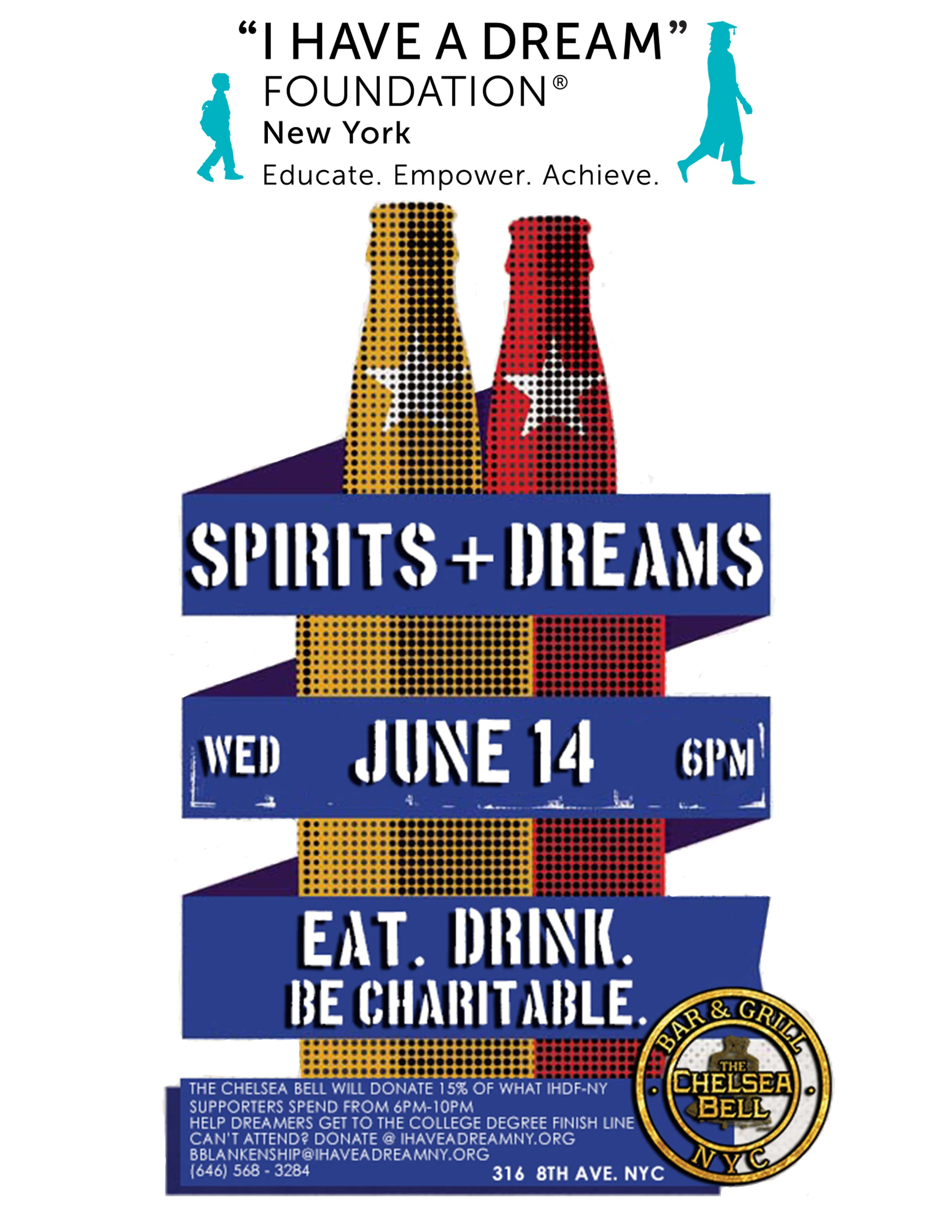 The Chelsea Bell Bar & Grill will donate 15% of everything that IHDF-NY supporters spend between the hours of 6PM-10PM on
